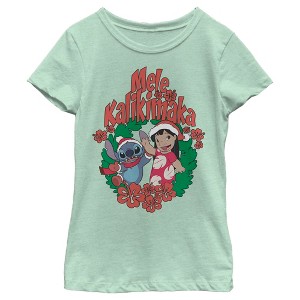 Girl's Lilo & Stitch Mele Kalikimaka Christmas T-Shirt - 1 of 4