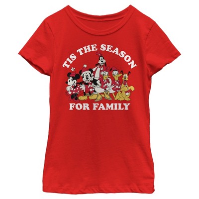 Girl's Mickey & Friends Season For Family T-Shirt - Red - Medium