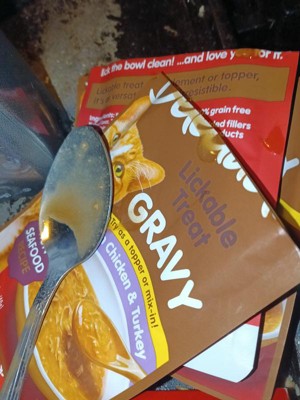 [This review was collected as part of a promotion.] My cat absolutely loves lickable treats. These he did love, just seemed slightly more liquidity than usual. Still loved it!