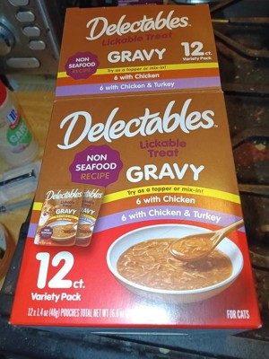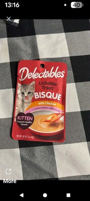 [This review was collected as part of a promotion.] I received the delectables squeeze ups as a sample to try. My picky kitty loved these and licked them right up!