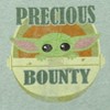 • Screen print design of an adorable creature who may look like a Baby Yoda, but is called The Child, in his hover pod pram with the words "Precious Bounty"