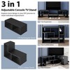 Spacious Storage Space: The TV console table is designed with a wide tabletop, L-shaped storage shelf and open shelf to classify the storage space and keep things organized. The tabletop is roomy enough to expand from 53" - 67", which is compatible with flat-screen TVs up to 65".