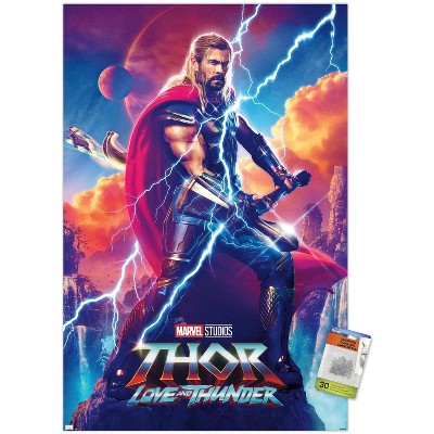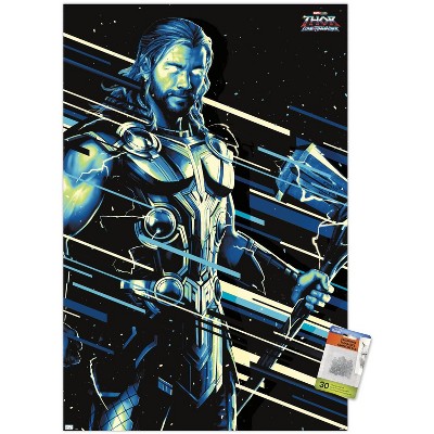 Trends International Marvel Thor: Love and Thunder - Vaporwave Unframed Wall Poster Print Clear Push Pins Bundle 22.375" x 34"