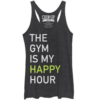 Women's CHIN UP Gym Happy Hour Racerback Tank Top - Black Heather - X Large
