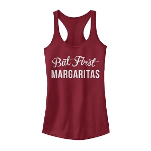 When life gives you limes, turn around and make a margarita in your Chin Up But First Margaritas Dark Red Racerback Tank Top! This funny fitted red tank top is the perfect way to get in the summer spirit and reads "But First Margaritas" in bold white script across the front.