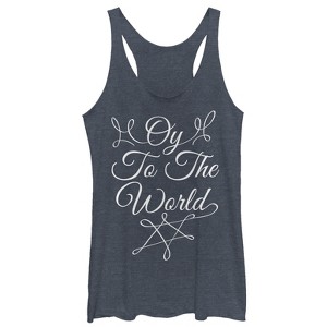 Women's CHIN UP Hanukkah Oy to the World Racerback Tank Top - Navy Blue Heather - X Large