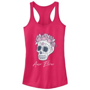 Juniors Womens CHIN UP Amor Eterno Skull Racerback Tank Top - 1 of 3