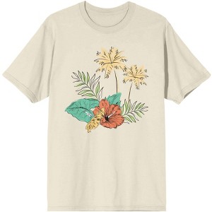 Celestial Tropics Palm Fronds and Hibiscus Flowers Men's Natural T-Shirt - 1 of 4