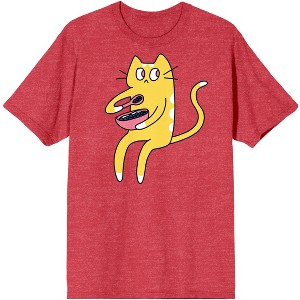 Derpy Kitty Yellow and White Cat Eating Cereal Men's Red Heather Graphic Tee - 2 of 3Derpy Kitty Yellow and White Cat Eating Cereal Men's Red Heather Graphic Tee - 3 of 3