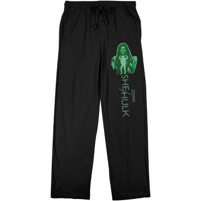 CUSTOM DESIGN: Jennifer Walters appears in hulk form a circle in the custom design on these sleep pajama pants while green letters below spell out, "She-Hulk." Fans of the Marvel hero will love this fun design.