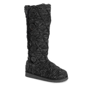 Feel good and look cute in Essentials by MUK LUKS? Women's Malena Boots. With soft faux fur lining to keep you warm and comfy foam insole for ultimate coziness, this mid-height boot will be your go to this cold weather season. Spot clean, no bleach, and lay flat to dry. Imported. - Durable TPR Sole - 100% Acrylic Knit Upper - 100% Polyester Faux Fur Lining - 100% Polyester Insole - Multiple Color Options Available - Mid-height style - Button details - Foam Insole - Women?s Whole Sizes 6-11