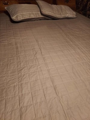 [This review was collected as part of a promotion.] I love this bedding set so much. The gray is calming and neutral. The set is reversible with plain gray or stripes. The quilt is comfortable and keeps me warm. The shams are easy to put on pillows and they stay on. These are great quality. [This review was collected as part of a promotion].