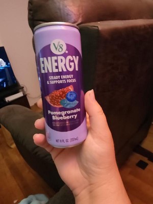The V8 Energy Pomegranate blueberry is SO GOOD. I like to buy them in bulk and always have them in my fridge. I enjoy them on the go and as a easy pick me up at work. In fact they are so good I need to be careful not to drink too many in one day because they do have caffeine. 8 oz is the perfect size too as big cans can take me awhile to drink and it gets warm. Give them a try to get the benefits of V8 plus energy!