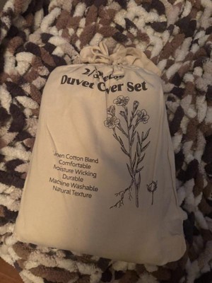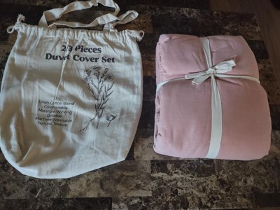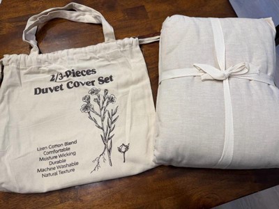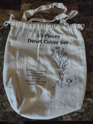 This three-piece nest linen cotton blend duvet cover set is amazing! It's so comfortable and feels beautiful. The fabric is so breathable! Another perk, is the cute little package that it comes in! A reusable bag! I am obsessed. I might even use this and tie-dyeed it!