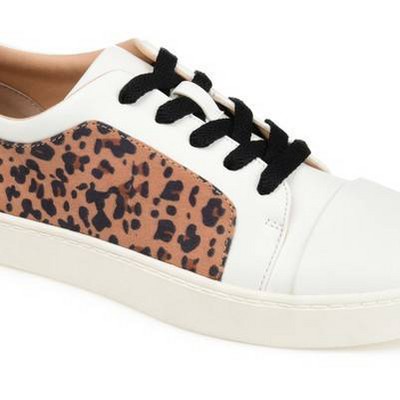 A fresh take on an essential athleisure staple. The Taschi is a low-top vegan leather sneaker by Journee Collection detailed with a two-tone pattern at the vamp. A classic lace-up closure sleek rubber sole and a heavenly 8 mm footbed finish this cool casual design (Each pair comes with a uniquely patterned animal print that is as individual as its wearer). At Journee Collection our athleisure styles provide basic comfort and will have your outfits looking as good as ever. They will take you from dull to sharp in no time.