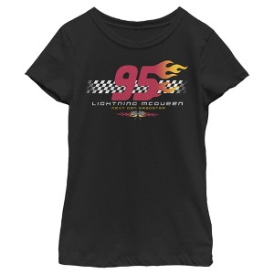 Head to Radiator Springs dressed in your best with the officially licensed Pixar Cars 95 Next Gen Dragster Yellow Girls' Graphic T-Shirt! A fun style is highlighted with this black Cars tee that reads: "95 Lighting McQueen Next Gen Dragster" with a stripe of a checkered racing flag in the background. It's time to put the pedal to the metal with the perfect Cars tee for the Pixar fan in your life.