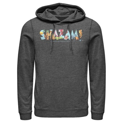 Men's Justice League Shazam Tie Dye Logo Pull Over Hoodie - Charcoal Heather - Large
