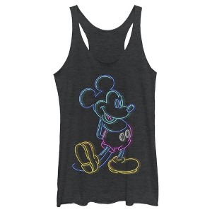 Women's Mickey & Friends Bright Neon Mickey Mouse Outline Racerback Tank Top - Black Heather - Small