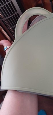 [This review was collected as part of a promotion.] These Upward Baby silicone placemats are excellent. Very easy to clean, after a small child's "dining" experience. Just wash them off in the kitchen sink. Most of the time, all you need to do is rinse them and they come completely clean. These newer models have a handle, making them easier to place and remove from the table. The older ones were a little harder to lift off the table, just because they have a pretty good grip on the surface and had no handles...you needed to pry them up a little.