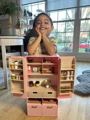 [This review was collected as part of a promotion.] This pantry set has brought hours of play time fun! I love that the pantry is this beautiful shade of the perfect pink. You get a fully stocked pantry with so many different play time options. Very well made to hold up for years.