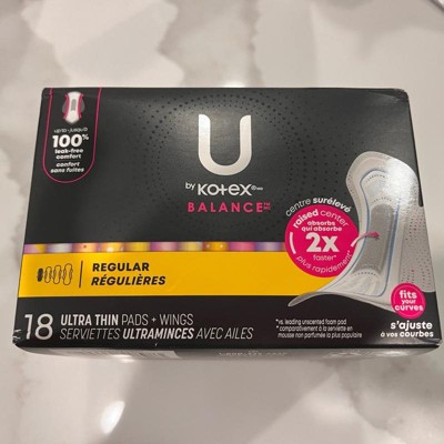 U by Kotex Balance Ultra Thin Regular Pads with Wings - Unscented - 36ct