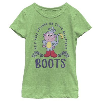 Swiper, no swiping these officially licensed Nickelodeon Dora the Explorer Girls' Graphic Tee! This cute shirt features a graphic of Backpack printed across the center, surrounded by colorful flowers and encircled by her catchy quote "Yum, Yum, Yum! ¡Delicioso!" written in purple colors. Go on an adventure with Dora, her talking purple backpack, and a monkey named Boots with a fun Nickelodeon tee that brings this educational animated television series to life.