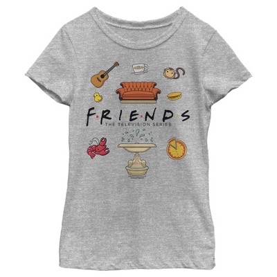 • Strut your stuff with this stylish new everyday Girls' T-Shirt that is perfect for every occasion! Featuring Ross, Rachel, Chandler, Monica, Joey, Phoebe, and Marcel drawn as small adorable cartoon characters!