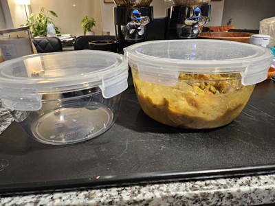 This set of storage containers are great. I recently made a huge pot of curry (which you'll see in my picture) and all if it fit inside the larger container. It holds so much! I love the snaps because it let's me know that the lid is secure. They're durable and can fit a lot.