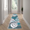 Emma and Oliver 2'x7' Contemporary Swirl Plush Pile Accent Rug with Scraped Effect in Turquoise, Gray, Black and White and Jute Backing