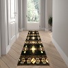 Emma and Oliver 2x7 Black Olefin Accent Rug with Complementary Southwestern Pattern in Beige, Black and Brown and Jute Backing