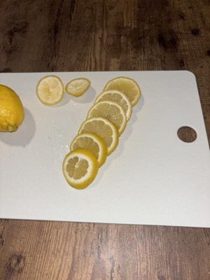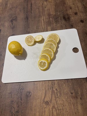 I like the size of this cutting board it’s perfect for cutting up veggies for a small salad or lemons and limes for my drinks and teas. Very easy to wash and clean as well. I do have to say, it’s not that durable. The first time using this, I was cutting cucumber and it left pieces of raised plastic (Polypropylene) with each cut mark on the board. Not very appealing thinking about getting bits of this in your meal. After that, I’ve since used this for cutting my cleaning lemons and will continue using this for things that I won’t be ingesting.