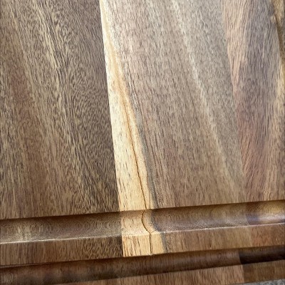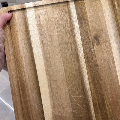 Would not recommend for the use of a cutting board. I think this was made for just a look. After one use of using it it looked like I have used it for more than one year. It looks all cut up every cut shows right on the board. After a week of using it, it already has a crack in the wood, and it has never been dropped. It’s from washing it. Please save your money and don’t waste your time on buying this cheap cutting board unless you’re using it just for style on your counter or to serve food.