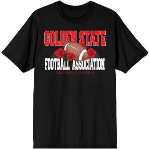 • CUSTOM DESIGN: A football surrounded by roses appears in the center of this graphic tee while red and white letters around the image read, "Golden State Football Association." Football fans will love this fun design.