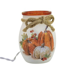 Stony Creek 4.00in Pumpkins Pre-Lit Small Jar, Glass, Fall Thanksgiving