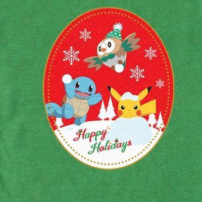 Gotta catch 'em all! Get into the holiday spirit with the iconic world of Pokemon cards, video games, TV shows, and more with adorable new officially licensed apparel for the whole family featuring your favorite Pokemon all dressed up for the Christmas season! This Men's Pokemon Christmas Happy Holidays Patch Graphic T-Shirt features Pikachu, Squirtle, and Rowlet playing with snow with the text "Happy Holidays" printed below and falling snowflakes in the background. Grab one of these new Pokemon tees today and be the envy of all your friends!
