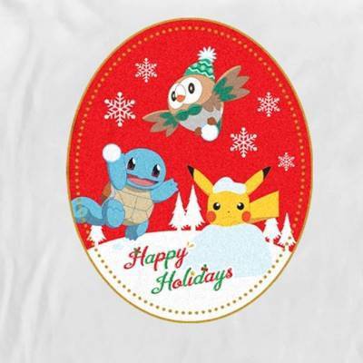 Gotta catch 'em all! Get into the holiday spirit with the iconic world of Pokemon cards, video games, TV shows, and more with adorable new officially licensed apparel for the whole family featuring your favorite Pokemon all dressed up for the Christmas season! This Men's Pokemon Christmas Happy Holidays Patch Graphic Long Sleeve T-Shirt features Pikachu, Squirtle, and Rowlet playing with snow with the text "Happy Holidays" printed below and falling snowflakes in the background. Grab one of these new Pokemon tees today and be the envy of all your friends!