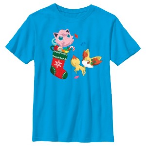 Boy's Pokemon Christmas Jigglypuff and Fennekin Stocking T-Shirt - 1 of 4