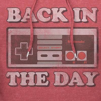 Remember a simpler time with the Nintendo Back in Day NES Controller Men's Pullover Hoodie. A classic NES controller is displayed with "Back in the Day" in distressed white print across this Nintendo pullover hoodie.