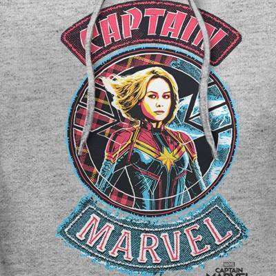 You may not be able to have Captain Marvel's awesome superpowers, but you can have her super fashion with the Captain Marvel Hero Patch Men's Lightweight Hoodie. A cool denim and flannel print patch portrays Captain Marvel on this unique men's Marvel sweatshirt.