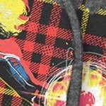 • A: The hoodie features a flannel print patch of Captain Marvel with the phrase 'Know Your Power'.