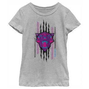 Girl's Black Panther: Wakanda Forever Geometric Black Panther Icon Scratch T-Shirt - Athletic Heather - X Large