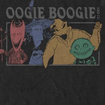 Make your way to Halloweentown and join the fun in this officially licensed Disney The Nightmare Before Christmas Let's Boogie Men's Graphic T-Shirt! This cool tee features portraits of Oogie Boogie, Lock, Shock, and Barrel across the front with the text "Oogie Boogie and Co." written above them. You will not want to miss out on this garment that is perfect for Halloween AND Christmas, as the movie itself. What's this? You can find more Halloween apparel here!