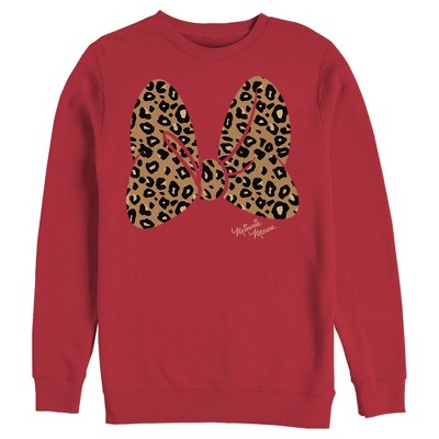 Men's Mickey & Friends Cheetah Print Minnie Mouse Bow Pull Over Hoodie - Red - X Large