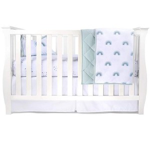 Ely's & Co. Baby Crib Bedding Sets Includes Crib Sheet, Quilted Blanket, Crib Skirt, and Baby Pillowcase (Blue Rainbow, 4 Piece Set)