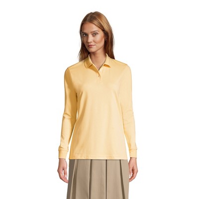Lands' End Women's Long Sleeve Feminine Fit Interlock Polo Shirt - Medium - Maize