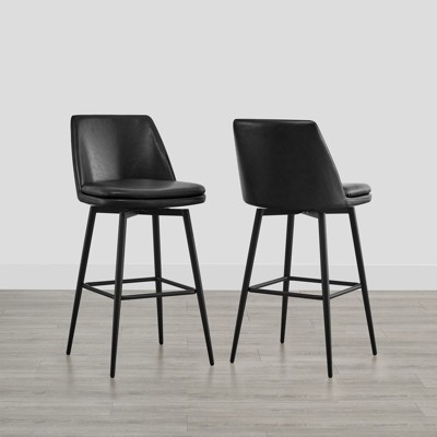 HOMCOM Bar Height Bar Stools Set of 2 PU Leather Swivel Barstools with Footrest and Tufted Back, Black