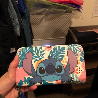 TROPICAL STITCH DESIGN - This Lilo and Stitch wallet features an allover tropical-themed pattern of leaves and Pineapples with a cute Stitch character design. On the other side is a metal alloy plaque that reads Disney Stitch.