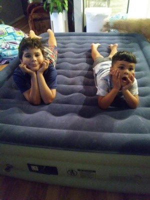 [This review was collected as part of a promotion.] This blow up air mattress is great quality. There are several thing we like about it. First, it came in a nice big drawstring carrying bag. Secondly, set up was easy and pretty painless just pull it out of the bag and plug in there is a inflate button. The only thing that I would fix about this mattress is making the cord a little longer. Thirdly, the mattress is super comfortable and amazing to sleep on. I was amazed the first time I blew it up how high and big the air mattress was. I was even more amazed when I slept on it the first time so comfortable. My kids have camped out in the living room on it and love it. We have also used it for guests when they come to visit and they love it as well. Lastly, the mattress has a deflate button for quick and easy clean up and only takes a few minutes. I would recommend to friends and family!