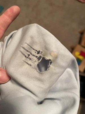 Unfortunately it may be thin. That could have been the reason why holes have appeared close to the buttons. Replacing it was a snap with Lands End.