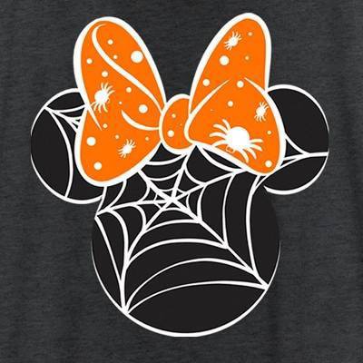 Who knew that dressing "mousey" could be so cute!? Celebrate Walt Disney's most iconic character with these officially licensed Mickey Mouse and Friends Minnie Web Silhouette Women's Graphic Racerback Tank Top, featuring Minnie's classic head silhouette updated for Halloween filled with spider webs and her iconic bow in orange color full of white spiders and small circles. Grab some Mickey and Friends apparel today and celebrate Halloween Disney-style this year!